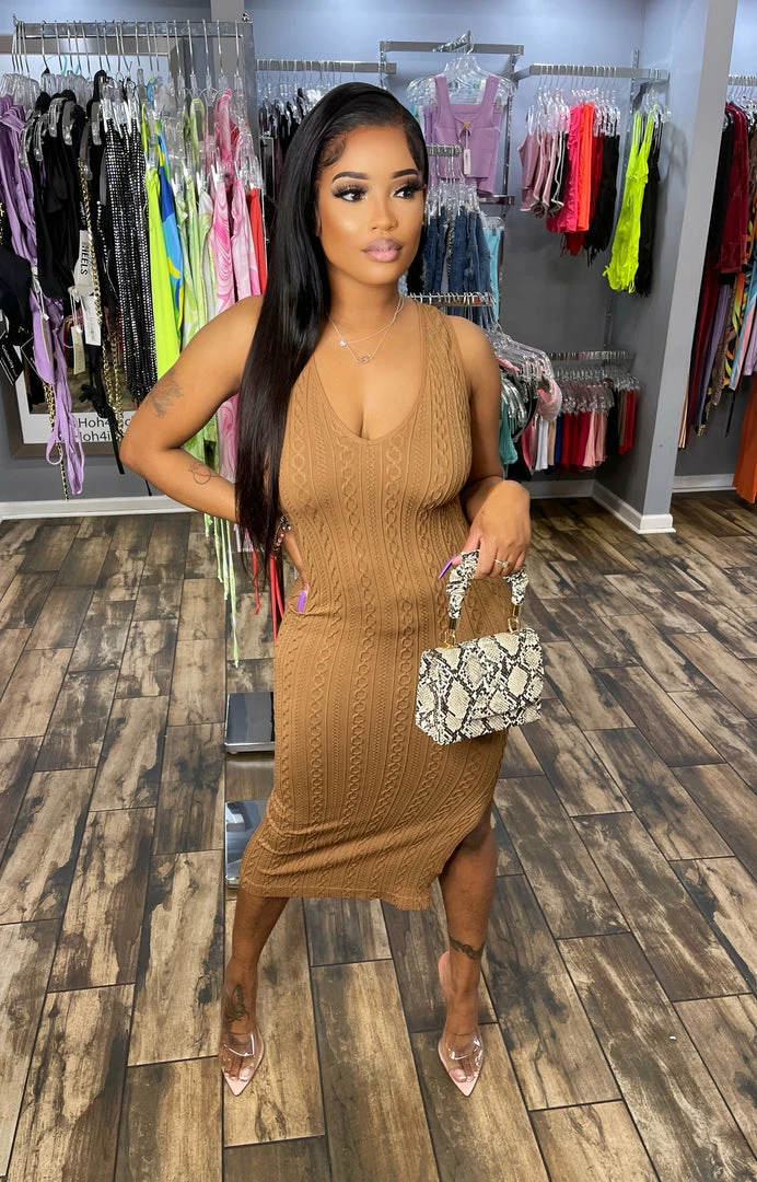 Head Over Heels: All In One Boutique Amber Dress- Brown (One Size)