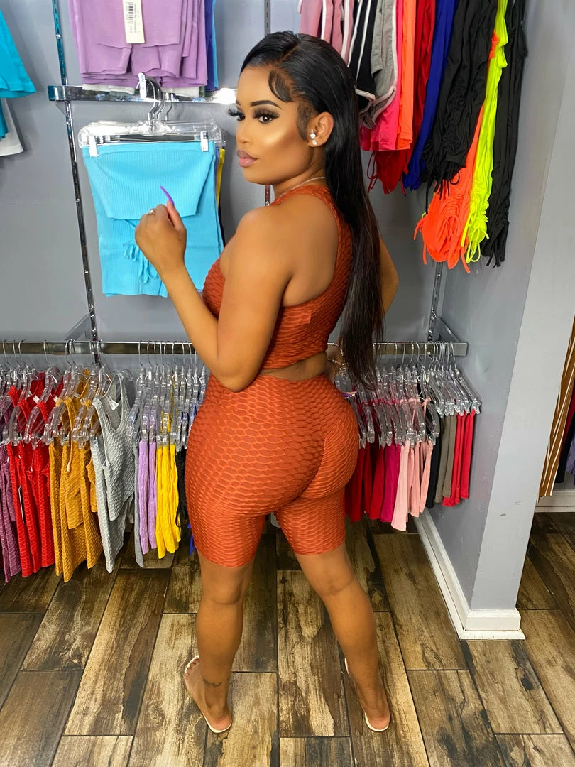 Head Over Heels: All In One Boutique Apparel Brazilian Short Set- Rust