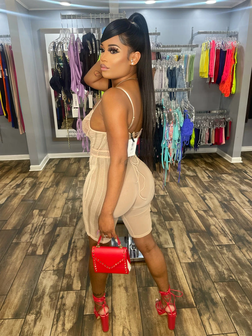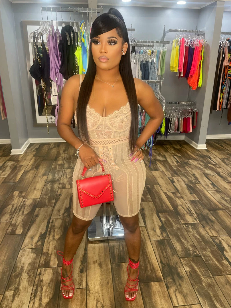 Head Over Heels: All In One Boutique Apparel Laced Up Romper- Nude