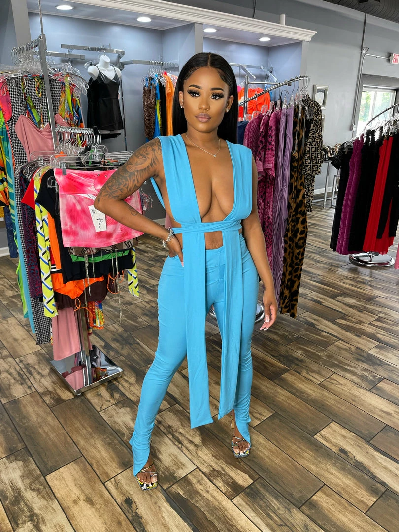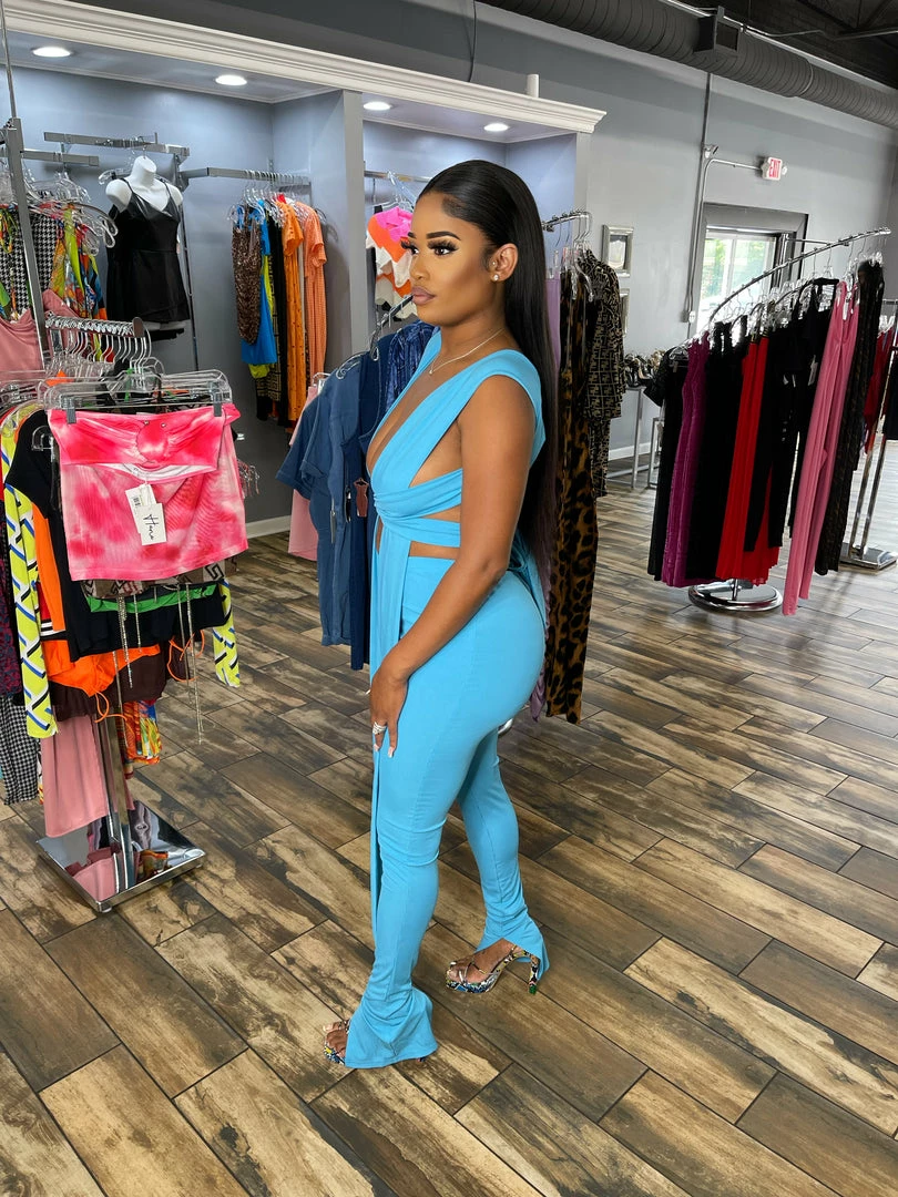 Head Over Heels: All In One Boutique Apparel Mercedes Pant Set- Blue