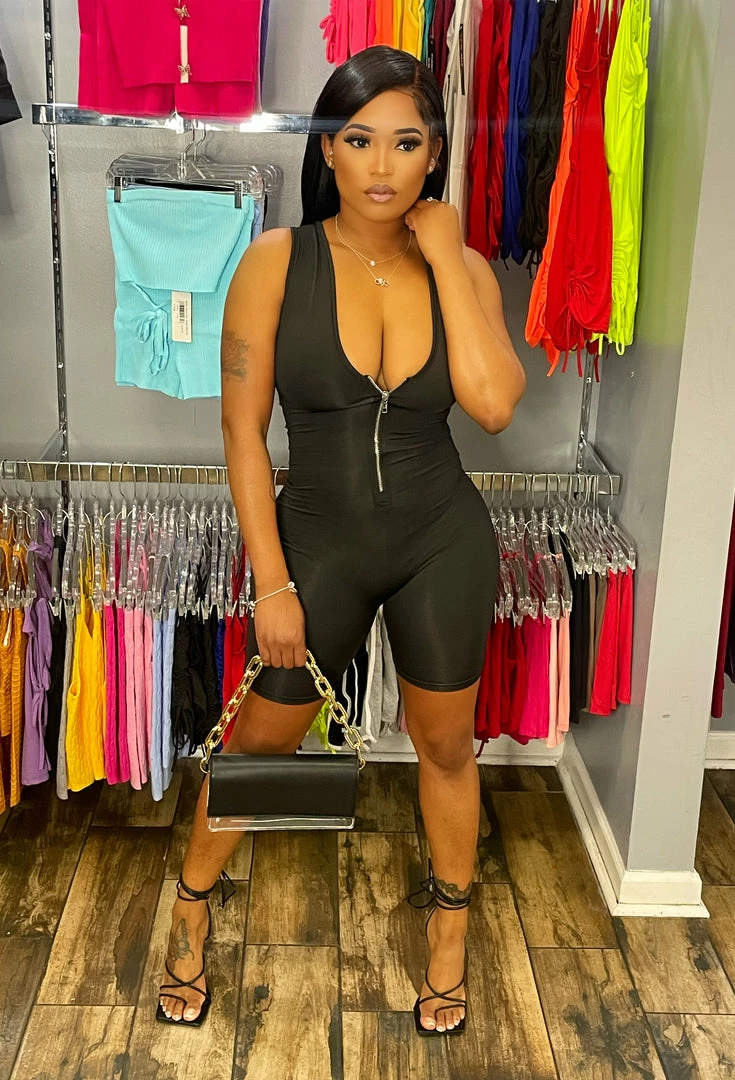Head Over Heels: All In One Boutique Apparel Zipped Up Romper- Black