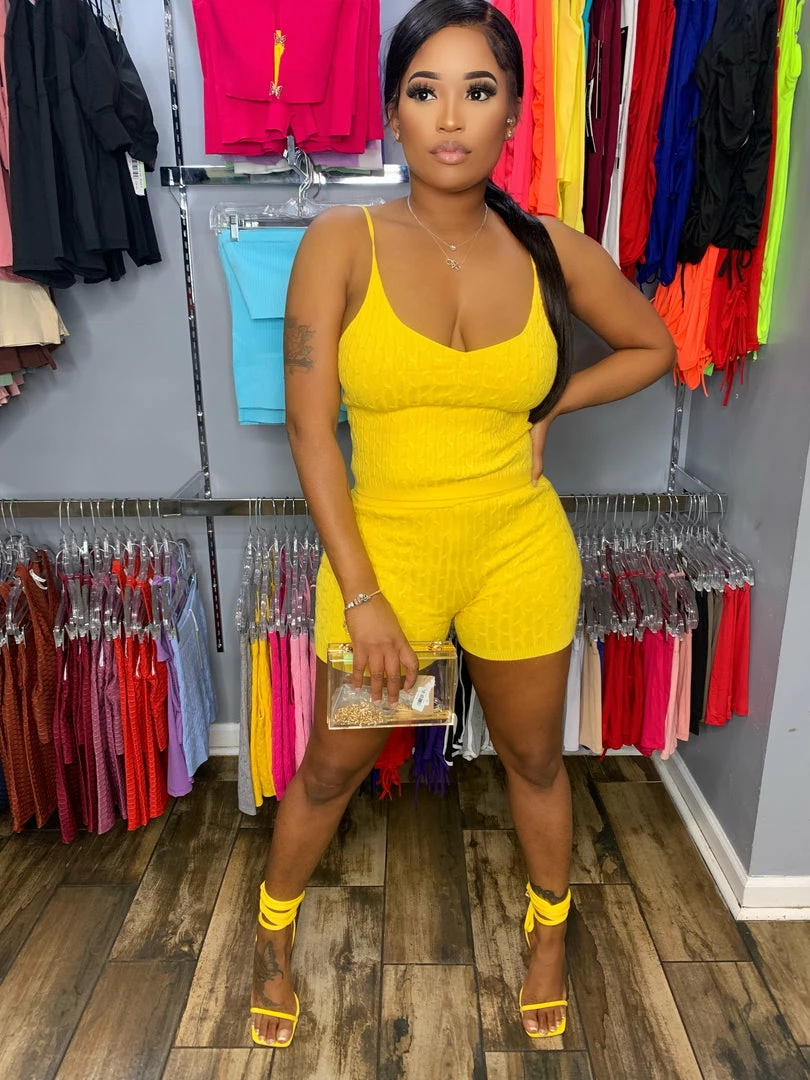Head Over Heels: All In One Boutique Cozy Short Set- Yellow Apparel
