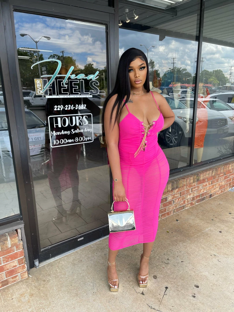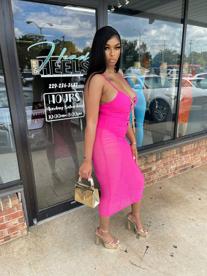 Head Over Heels: All In One Boutique Date Night Mesh Dress- Pink Apparel