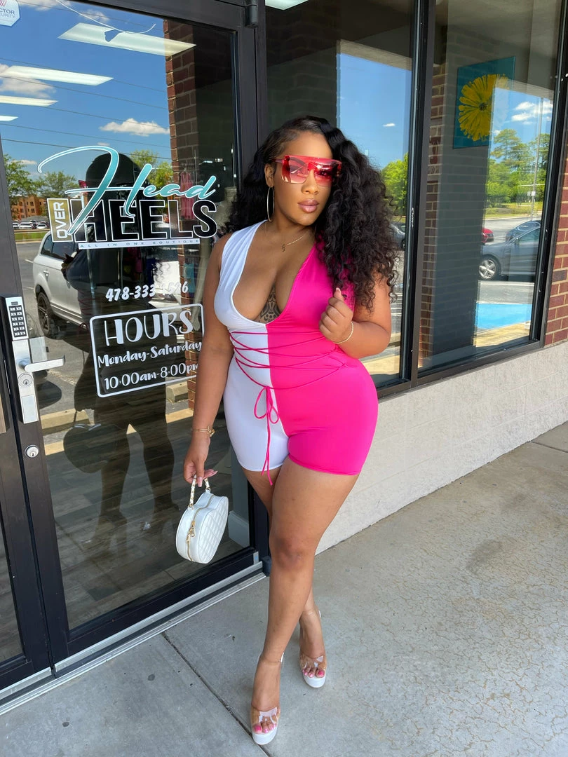 Head Over Heels: All In One Boutique Gemini Romper-Pink Apparel