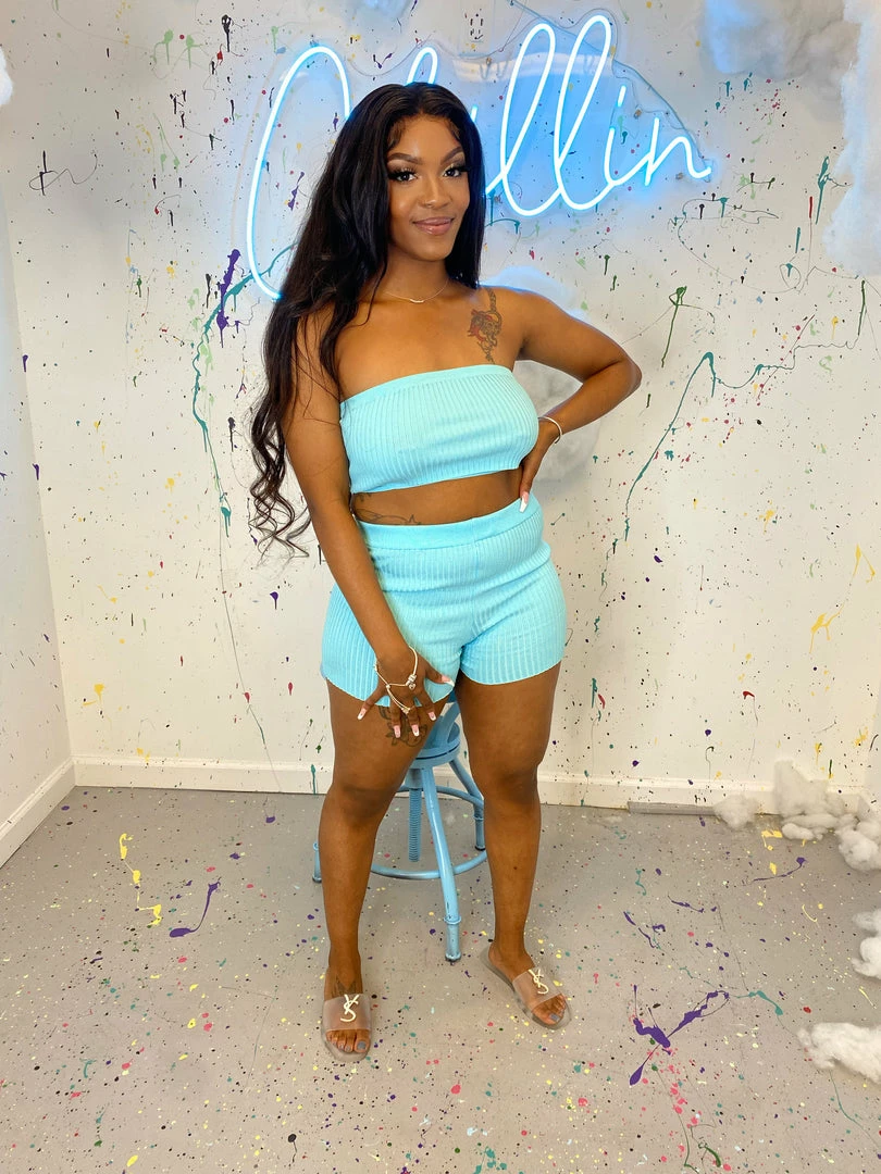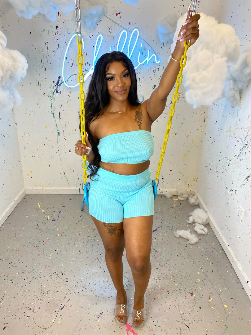 Head Over Heels: All In One Boutique Girlie Short Set- Baby Blue