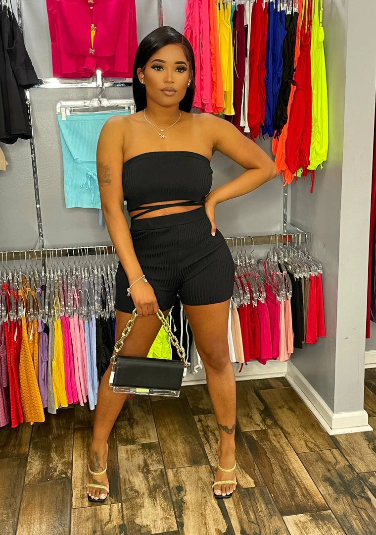 Head Over Heels: All In One Boutique Girlie Short Set- Black