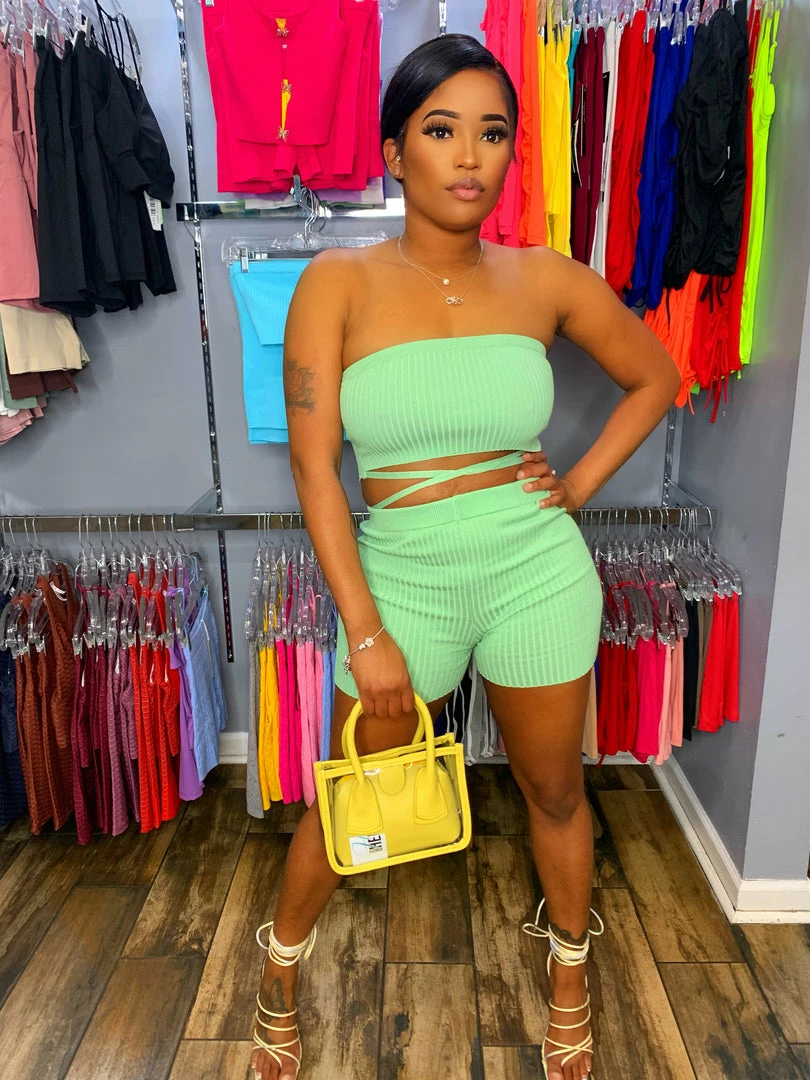 Head Over Heels: All In One Boutique Girlie Short Set- Mint Apparel