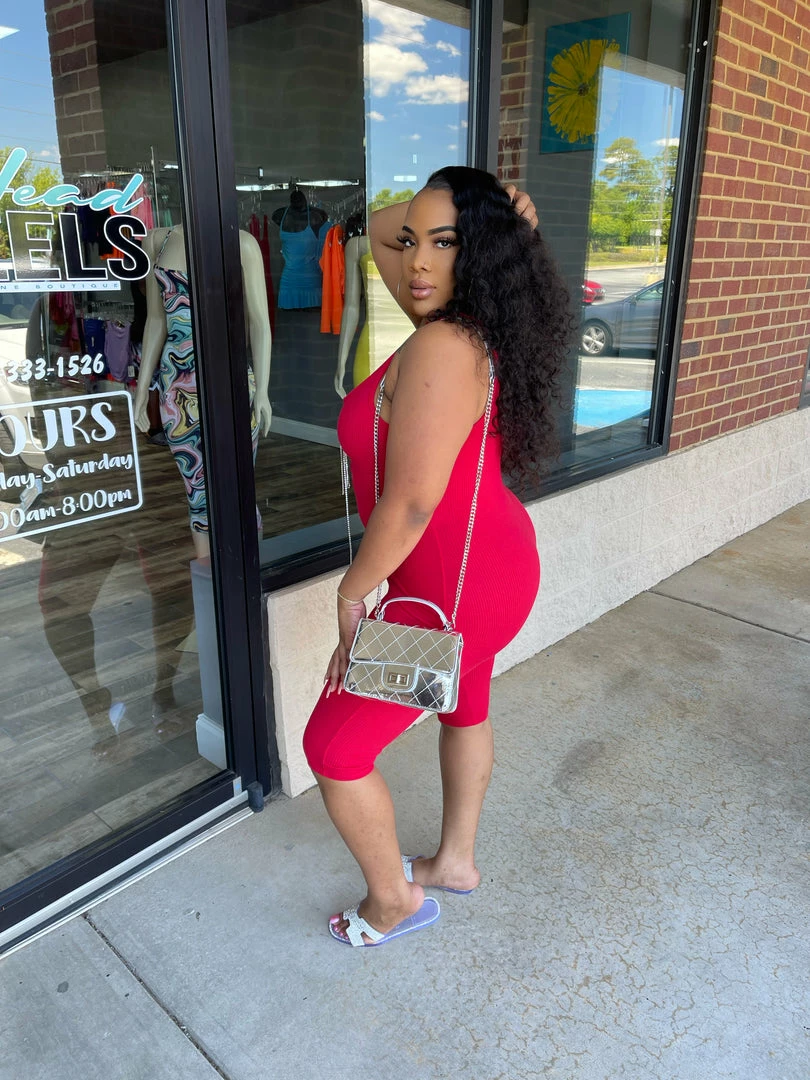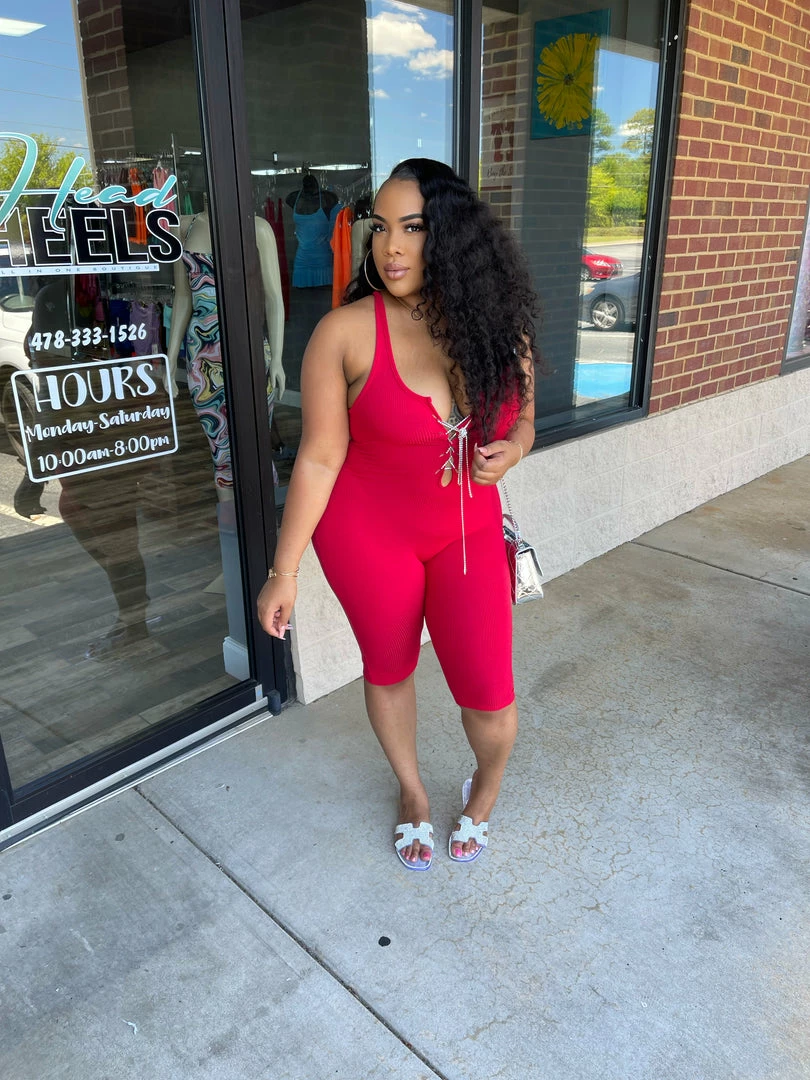 Head Over Heels: All In One Boutique In Chains Romper- Red Apparel