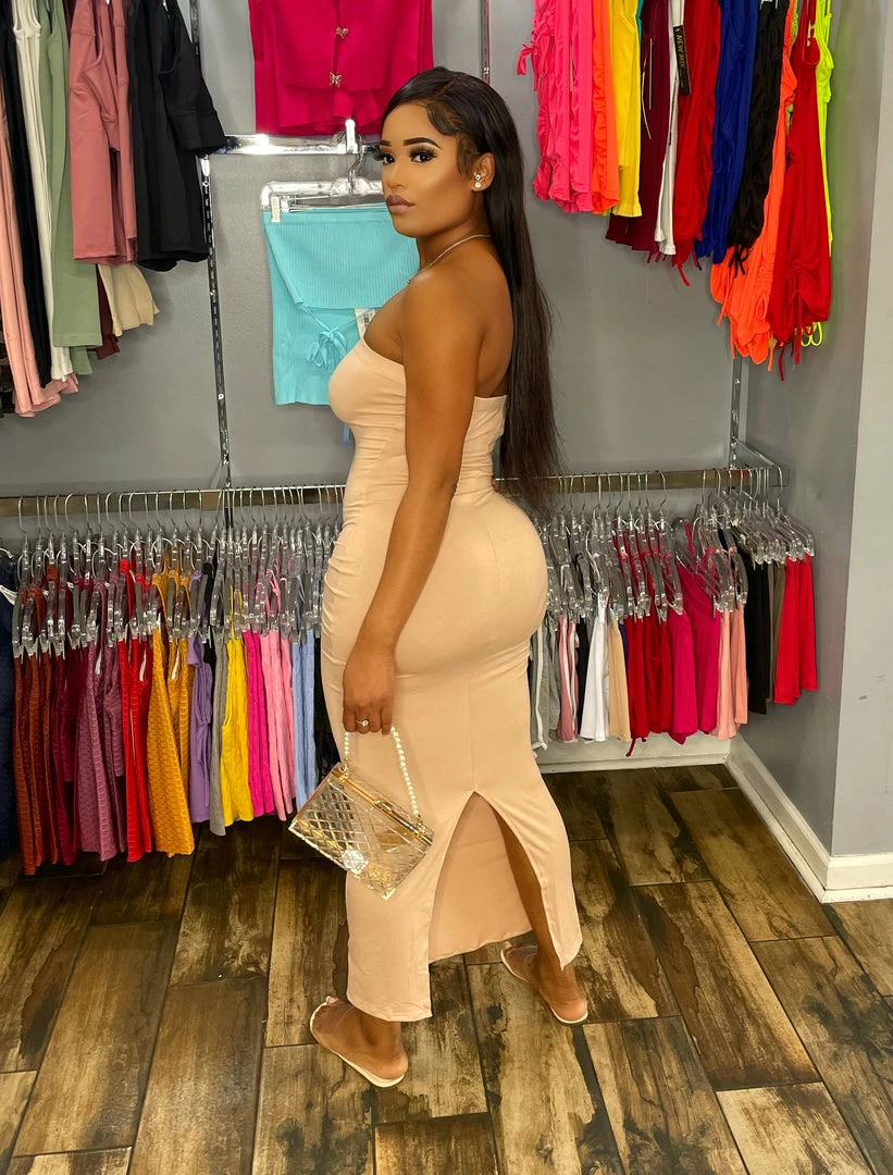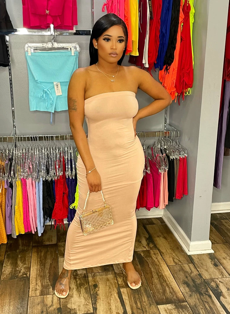 Head Over Heels: All In One Boutique Long Tube Dress- Nude Apparel