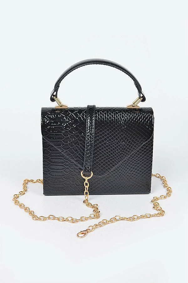 Head Over Heels: All In One Boutique Metallic Snake Satchel- Black