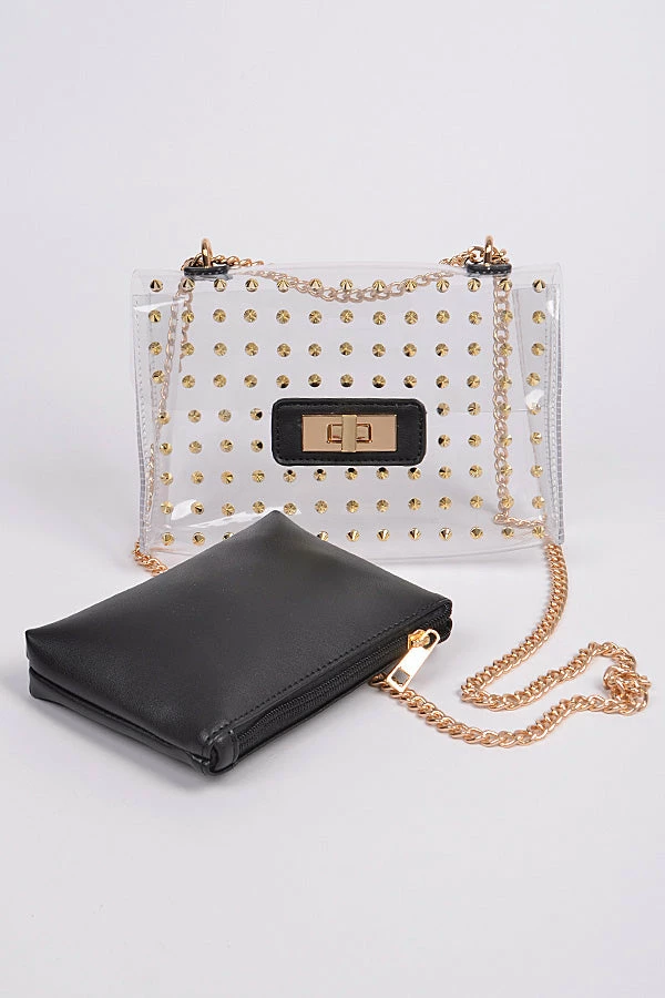 Head Over Heels: All In One Boutique Studded Pouch Bag- Black/ Gold Accessories