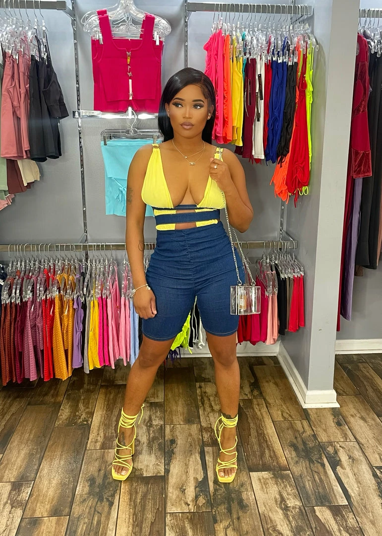 Head Over Heels: All In One Boutique Trina Babe Romper- Yellow
