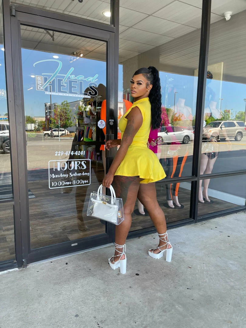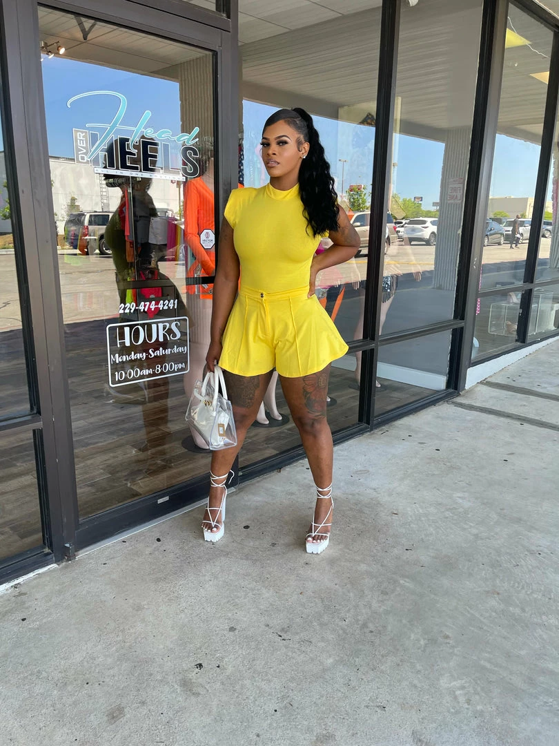 Head Over Heels: All In One Boutique Verona Short Set- Yellow Apparel