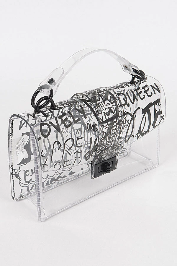 Head Over Heels: Bundle And Shoetique Accessories Clear Graffiti Satchel- Black