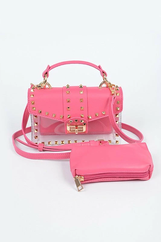 Head Over Heels: Bundle And Shoetique Accessories Studded Two In One Clutch- Fuschia