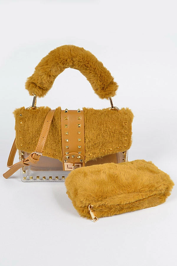 Head Over Heels: Bundle And Shoetique Studded Fur Satchel- Mustard Accessories